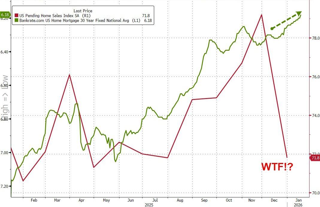 Tyler Durden Wed, 01/21/2026 - 10:35After four straight months of increases, US pending home sales crashed in December (-9.3% MoM vs -0.3% MoM exp), dragging sales down 1.27% YoY in 2025...