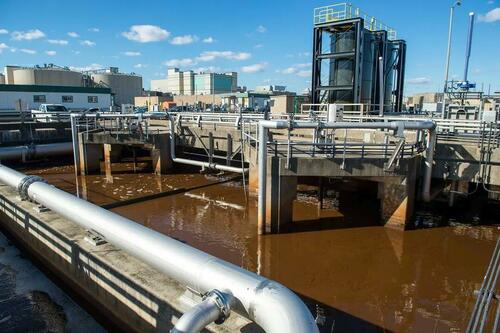 A huge tank full of wastewater is seen at DC Water’s Blue Plains plant in Washington on Nov. 23, 2015. In its 2025 report card, the American Society of Civil Engineers gave U.S. wastewater infrastructure a D+, which the group largely attributed to funding gaps that don't meet the needs of expanding usage and failing systems. Nicholas Kamm/AFP via Getty Images
