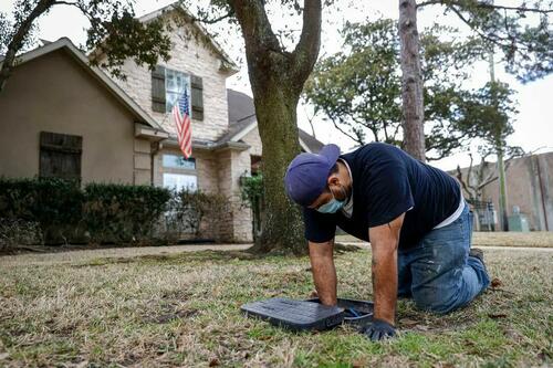 A plumber turns the water back on after repairing a burst pipe in a home in Houston on Feb. 21, 2021. Bland Warren said that as weather patterns shift, wastewater systems and storage infrastructure are often required to manage more variable conditions. Justin Sullivan/Getty Images