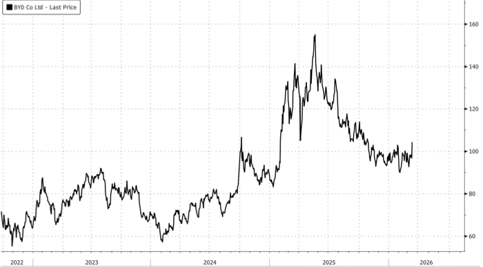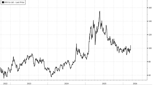 In commodities, spot gold and silver are down 0.7% and 3.3% respectively. Bitcoin continues to climb, up 2.2%. WTI drops 2.5% to $96.25 after rising as high as $101 early in the session.