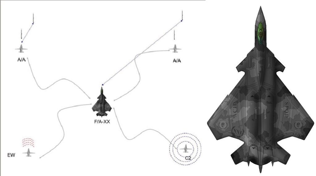 The F/A-XX placeholder design as shown by the U.S. Navy in its vision for 2030-2035, together with a better image of the original fictional design. (Image credit: U.S. Navy and Tapatalk) Also included are:
