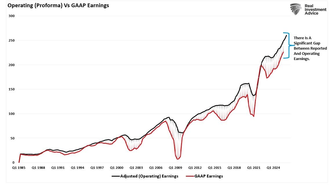 In the 1980s and early 1990s, companies typically reported GAAP earnings in their quarterly releases. If an investor dug through the report, they would find “adjusted” and “pro forma” earnings buried in the back. Today, GAAP earnings are buried in the back, hoping investors will miss the ugly truth.